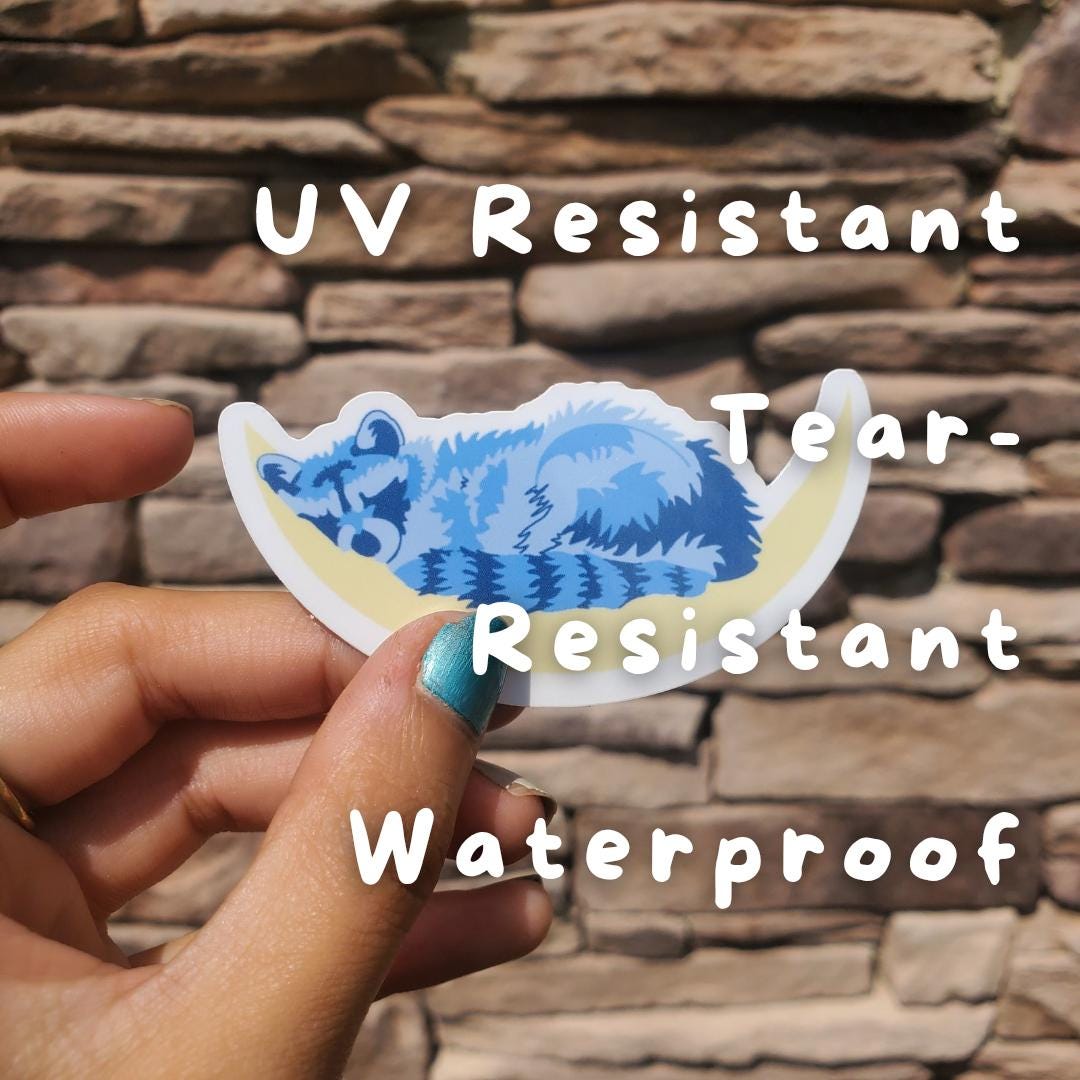 Do you love raccoons and nature? Do you wish you could take them with you everywhere you go? Well, now you can with these starry holographic stickers! These guys are always getting their hands into something, and now they're resized to fit on your water bottle, laptop, notebook, phone, or tablet! They can be used to decorate planners, tumblers, skateboards, helmets, toolboxes, or just about anything that's a hard surface! Vinyl is more durable for everyday wear and tear! These would also make a great Mother's Day gift for moms, grandmothers, kids, family members, coworkers, roommates, friends, and more!