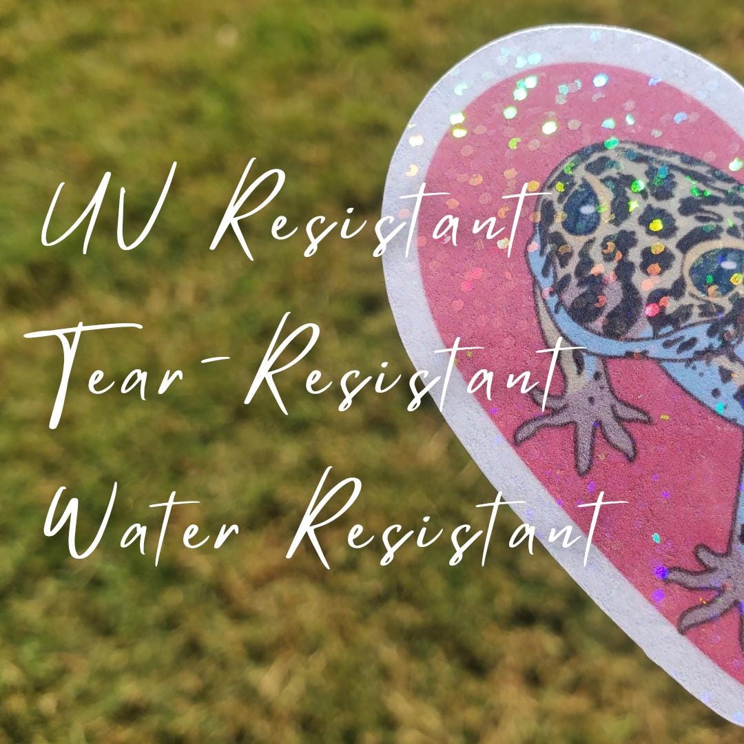 Who doesn't love these cute little critters? Show your Leopard Gecko love with these adorable stickers! Hand-painted on canvas, these beautiful creatures have been digitally resized to fit on your water bottle, laptop, notebook, phone, or tablet! They can be used to decorate planners, tumblers, skateboards, helmets, toolboxes, or just about anything that's a hard surface! These would also make a great Mother's Day gift for moms, grandmothers, kids, family members, coworkers, and more! The glitter laminate gives them such a fun and magical charm!