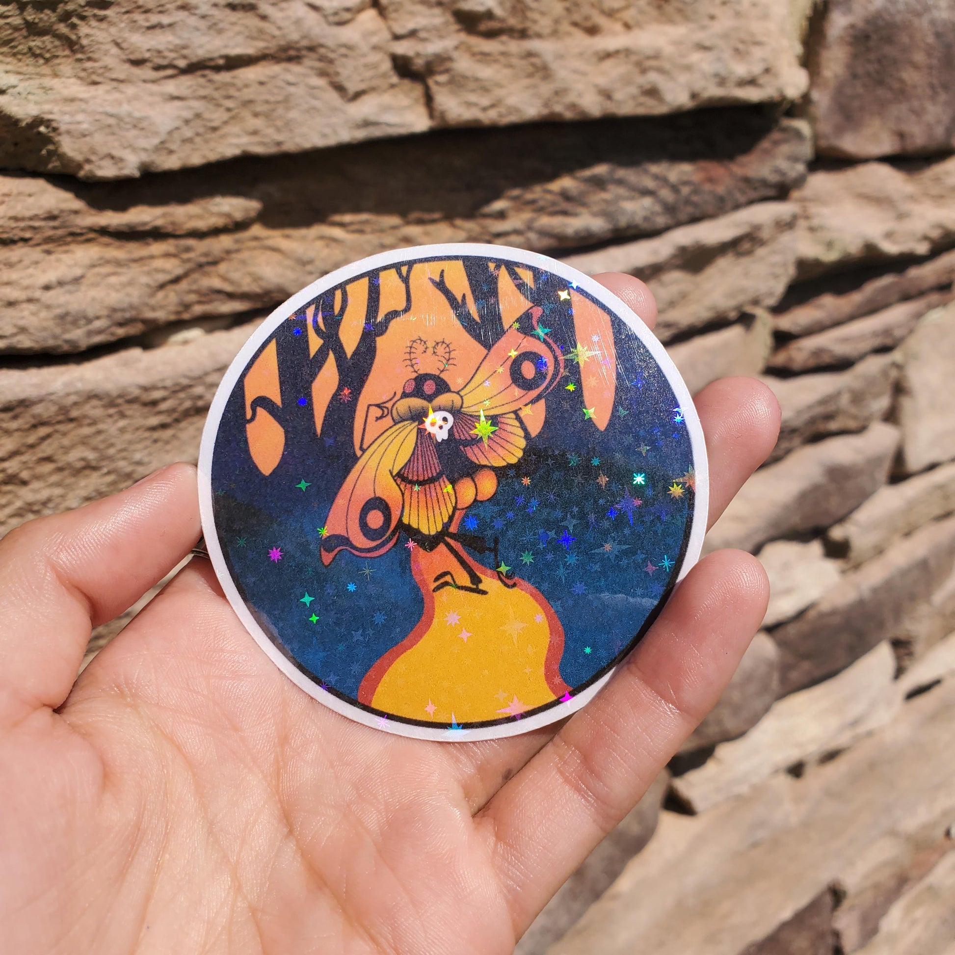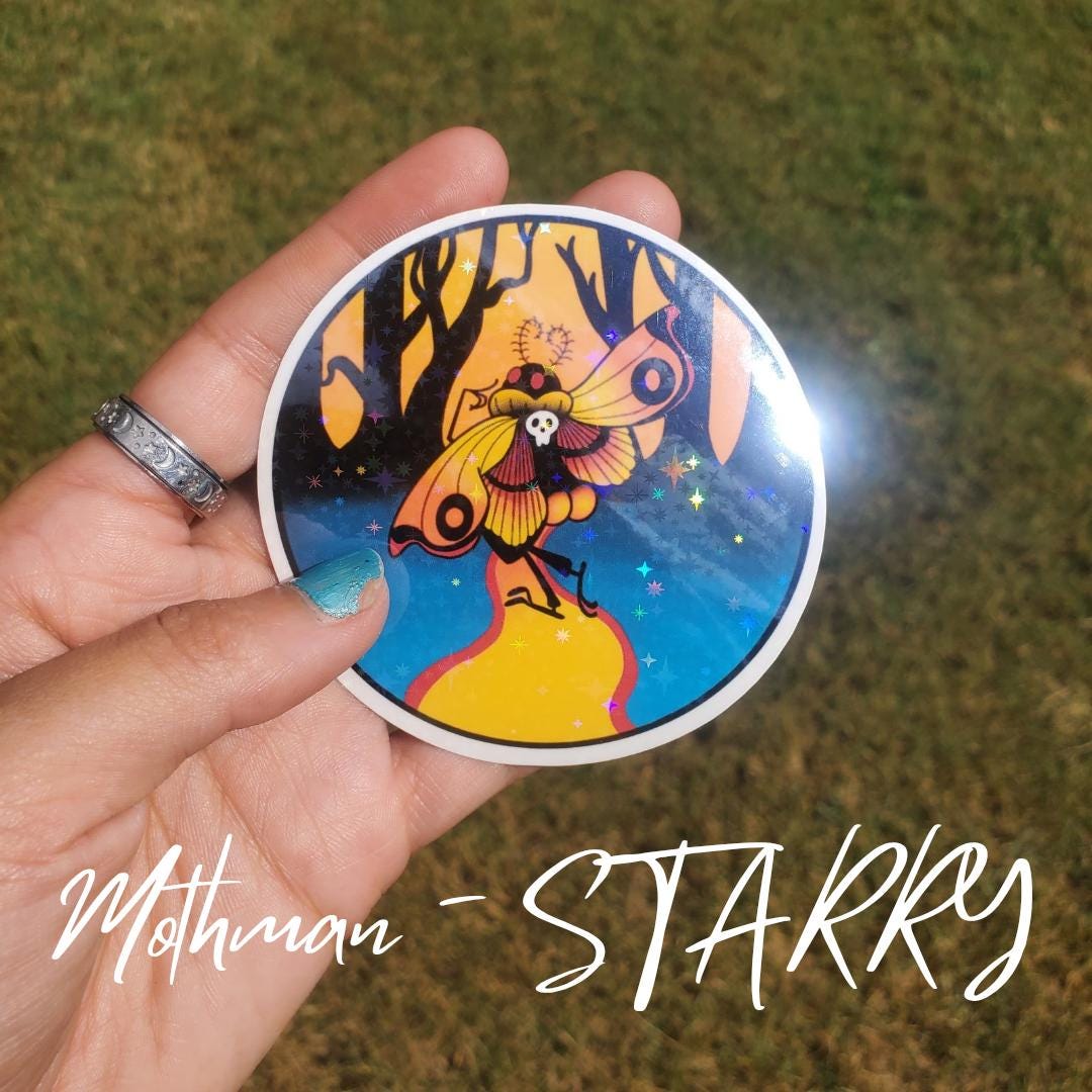 Mothman Sticker Glossy and Starry | Red, Orange, Yellow, Blue, Black