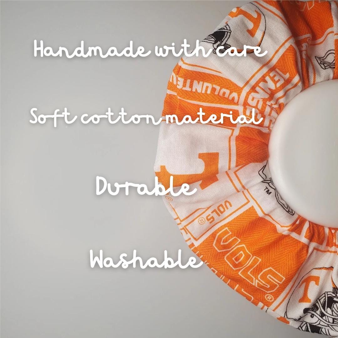 It's Football Time in Tennessee! And what better way to celebrate and Back the Orange than by wearing this adorable hair accessory to games! These can be used for putting your hair up in a variety of ways, as well as wearing on your wrist for "Fashion Standby"! elevate your hairstyle and stay cozy this Fall with these soft hair ropes! Scrunchies can be less damaging to hair, and can be rewashed if needed! These are a perfect gift for Mother's Day and Birthdays. Great for Friends, Coworkers, Sisters, Daughters, Relatives, or any other Loved Ones! Be prepared for any sports event with these stylish hair elastics!